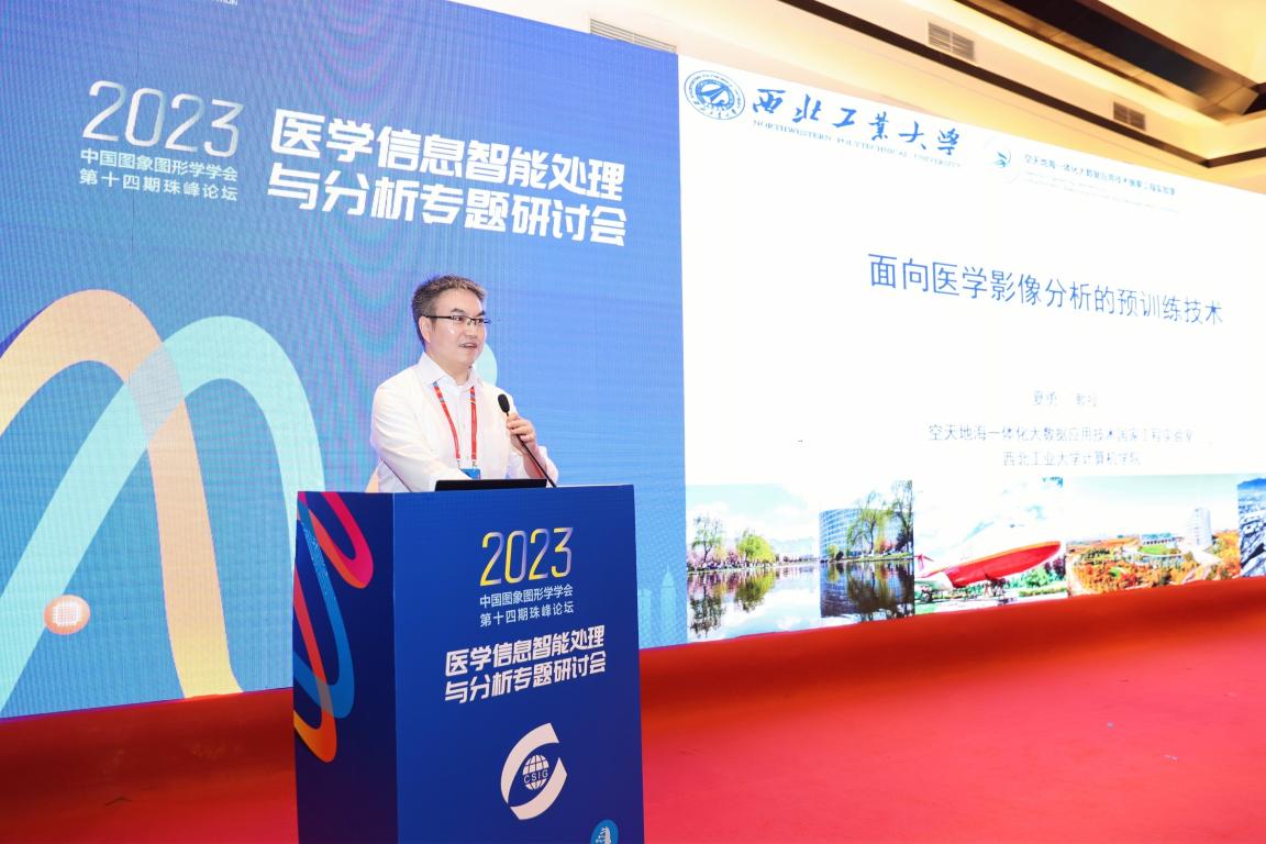 夏勇教授作题为“面向医学影像分析的预训练技术”的报告。报告围绕医学影像分析模型预训练的技术挑战,从数据标注、数据维度、模型能力等角度,介绍报告人课题组开展的相关研究和经验体会,并探讨医学影像分析模型预训练面临的机遇与挑战。