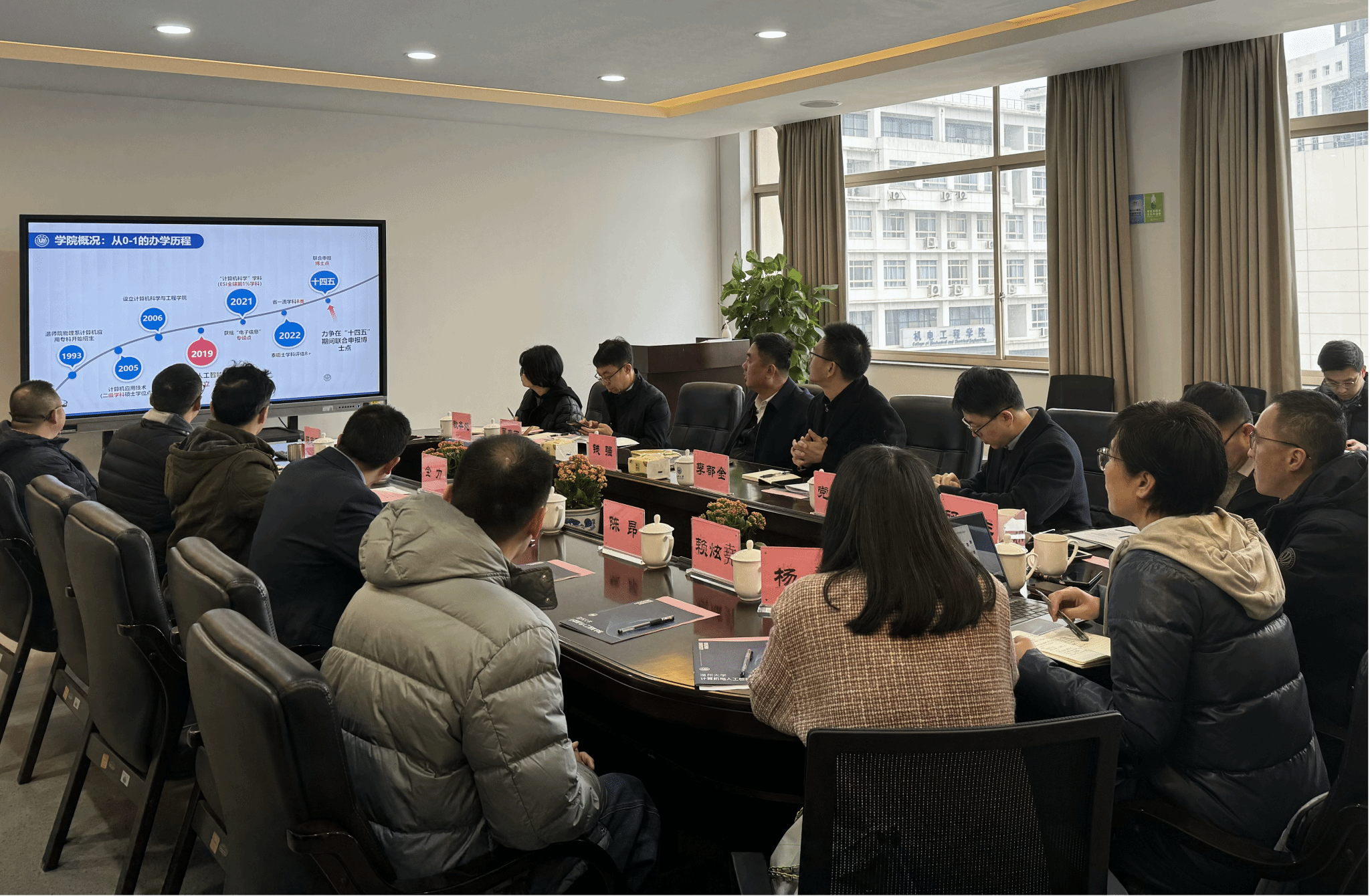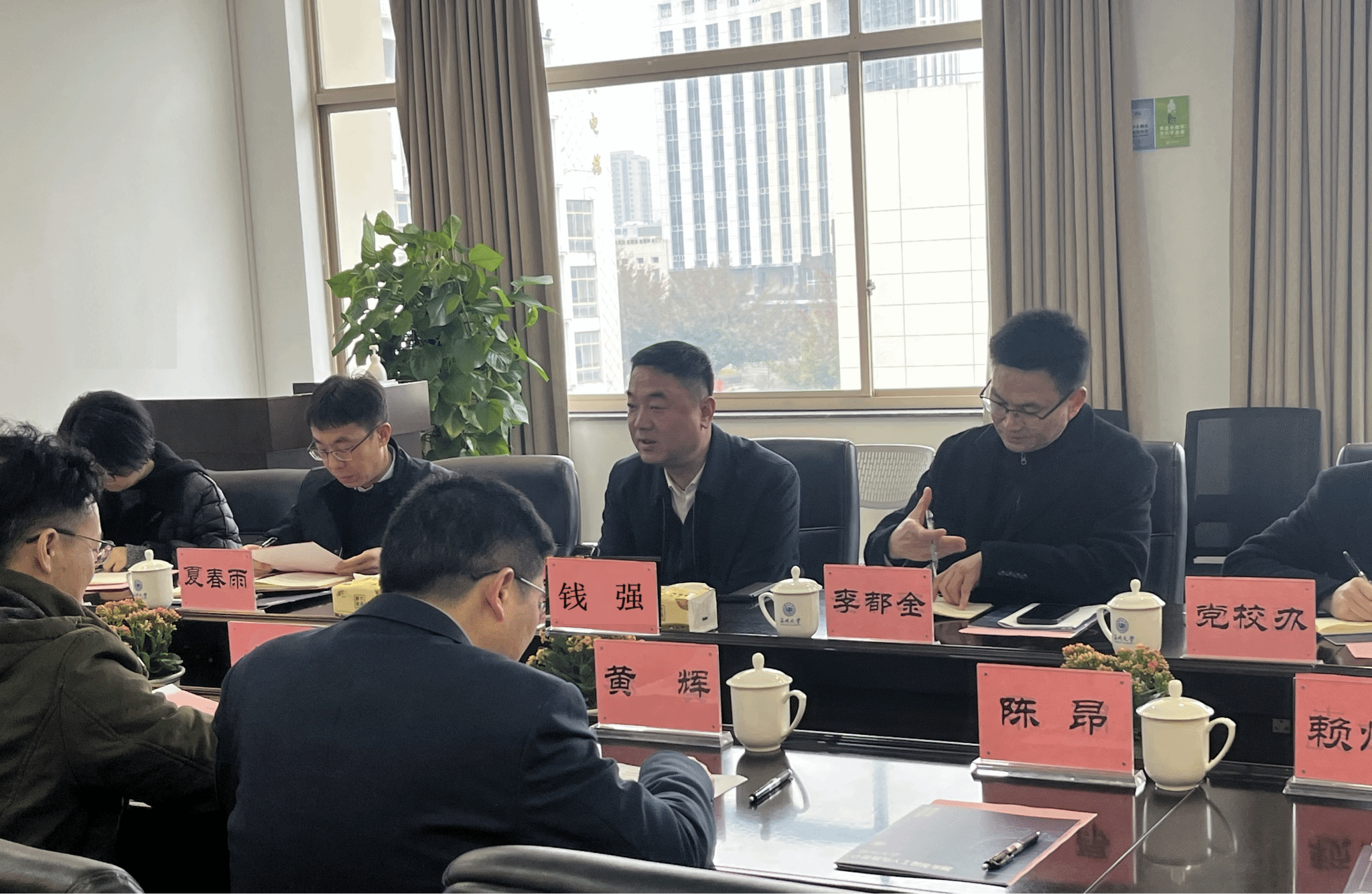 3月4日上午,校党委书记钱强,党委委员、纪委书记、省监委驻温大监察专员李都金,党委委员、组织部部长夏春雨一行莅临成人短视频 调研指导,党校办、教务处、研究生院、科技处、人事处等职能部门负责人陪同调研。成人短视频 全体领导班子及相关地方研究院负责人参加座谈会。