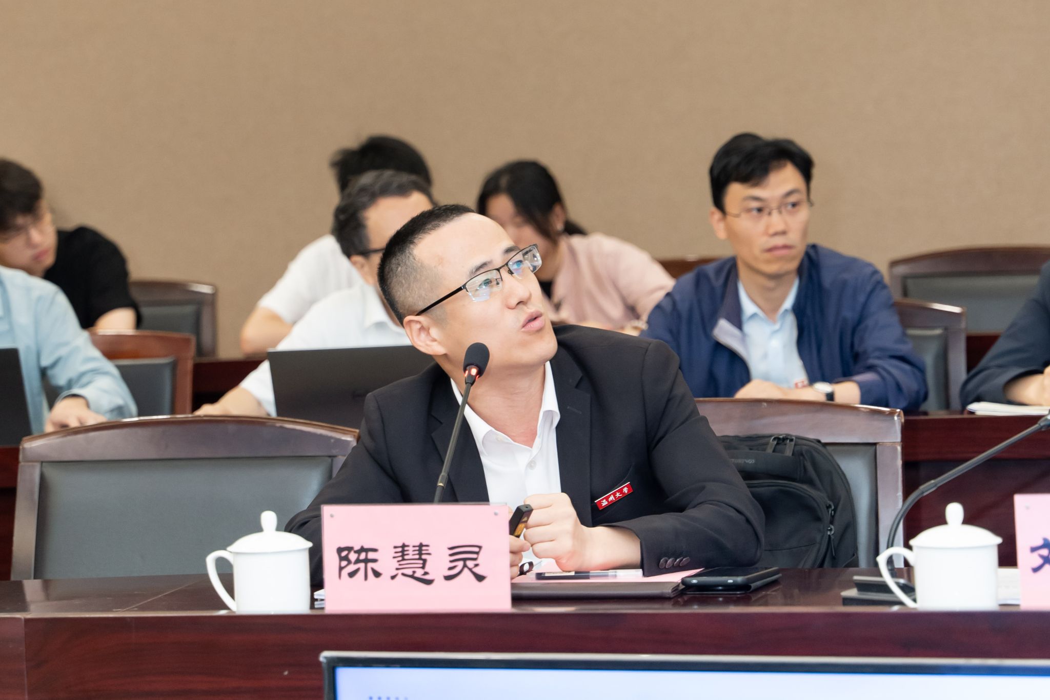 陈慧灵院长作评估工作汇报,详细介绍了学位点的师资队伍、课程教学、奖助体系等情况,数据翔实,案例丰富,成人短视频培养目标明确,培养体系完整,培养过程规范,成人短视频 实践支撑能力强。
