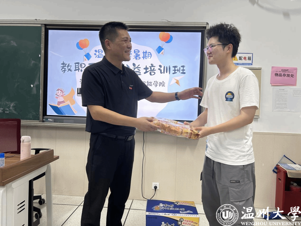 2024年7月8日下午,成人短视频 工会主席孙安梭一行亲临现场,向辛勤付出的师生们表达了深切的关怀。在现场,孙主席与实践队成员亲切交谈,了解到实践队队员利用自身专业优势,精心设计了适合各年龄段孩子的课程内容,从基础的编Scratch趣味编程培训课到趣味编程项目实践,让孩子们在轻松愉快的氛围中感受编程的魅力。孙主席向实践队队员们传达了学校工会对这次活动培养和锻炼孩子逻辑能力的高度重视和大力支持,同时也强调了安全问题,提醒实践队成员要时刻关注孩子们的安全,确保活动顺利进行。最后孙主席代表学校工会向“ACE计划”暑期实践队派发了慰问品,与参与本次培训的全体成员合影留念。
