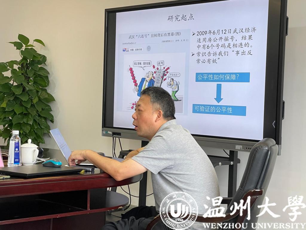 因武汉一起“六连号”的新闻,如何保证摇号的公平性的问题引起了各界广泛关注,受到文献《Secret sharing:‘How to share a secret?’》启发,刘教授发表了“基于Fp上插值多项式的可验证随机数”的论文,其团队以此为起点展开了相关内容的研究。在本次会议上,刘教授向在座师生介绍了研究过程中存在的问题、相关领域的前沿论文以及团队在这方面完成的创新工作,讲座内容精彩、详实。