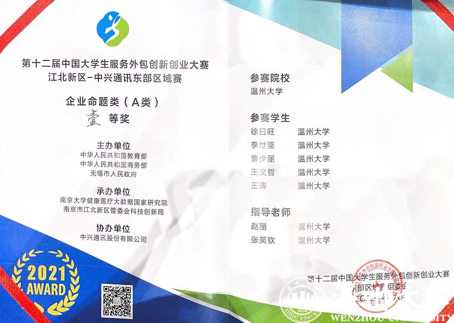 6月4日,第十二届中国大学生服务外包创新创业大赛东部区域赛决赛在南京落下帷幕,我院学子喜获一等奖,这也是温大历史上首次获得区域决赛一等奖。