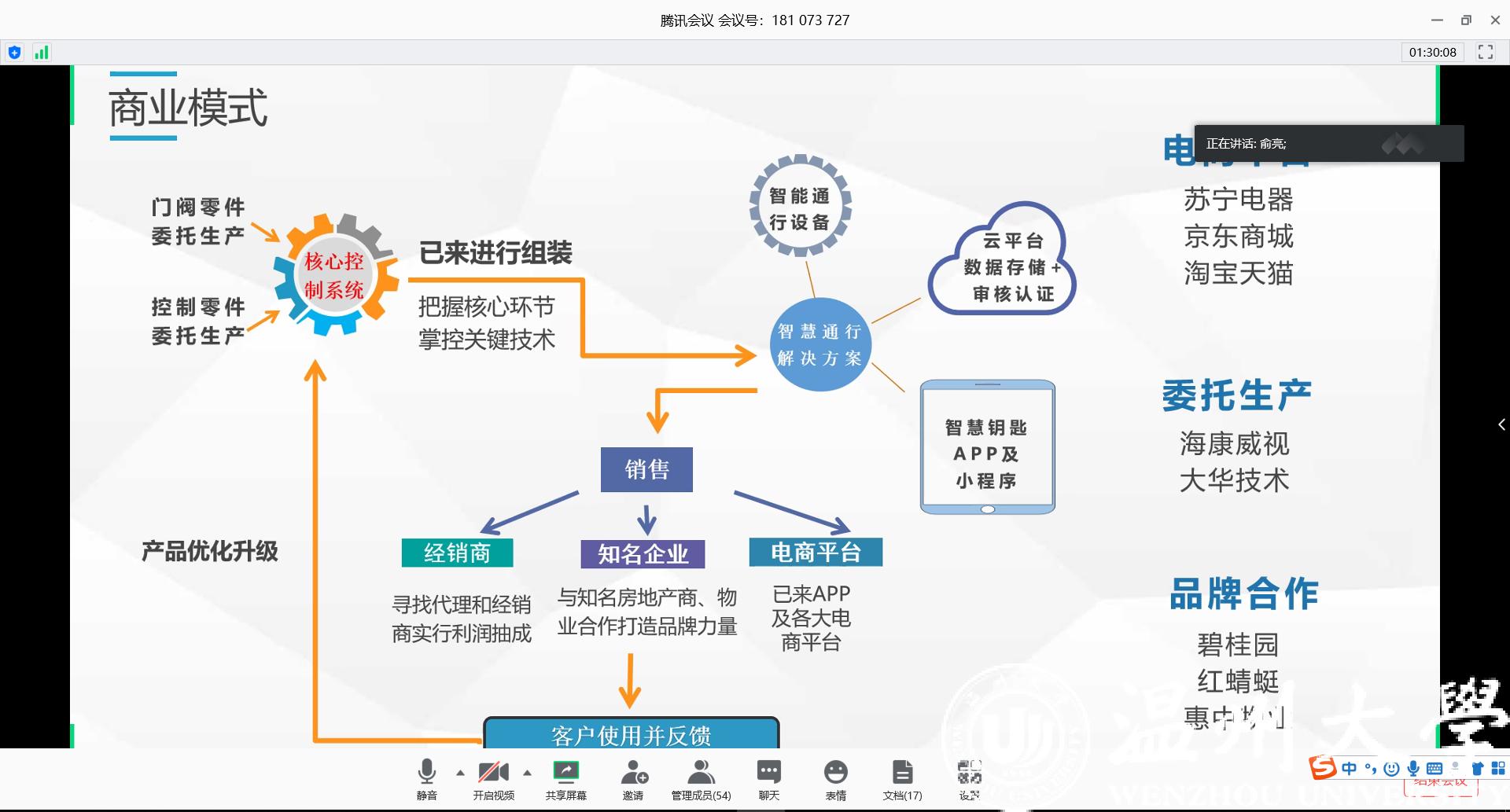4月26日下午14:00,我院首届“互联网+” 大学生创新创业大赛在腾讯会议以在线路演方式顺利举行,本次大赛邀请到三位知名的“互联网+”评审专家李健云、钱迅雷和汪忠担任评委,共吸引了100多位成人短视频 师生前往观摩。大赛由黄辉副院长主持。