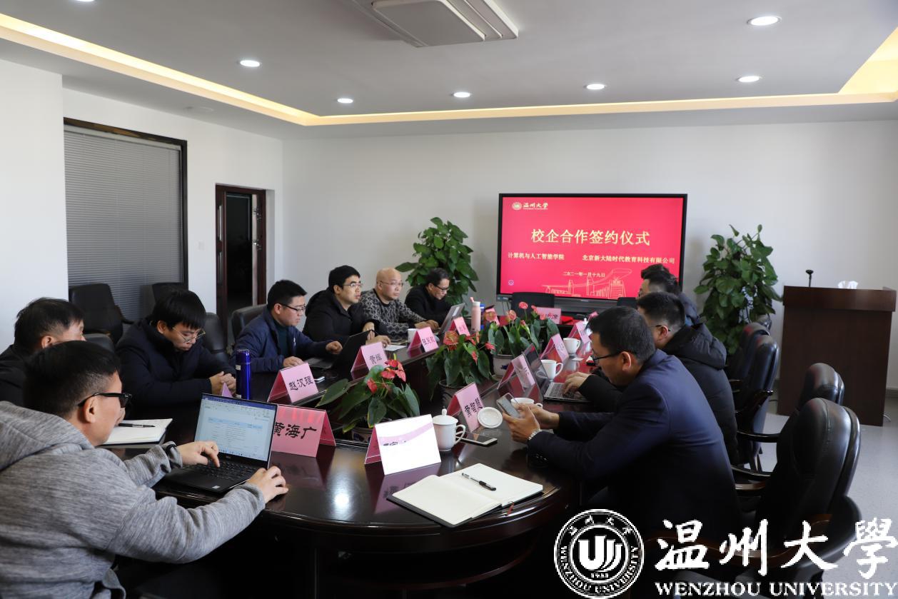 1月19日下午,成人短视频 与北京新大陆公司在5B318会议室举行校企合作签约仪式。院长张笑钦、副院长黄辉、系主任及专业负责人和北京新大陆时代教育科技有限公司战略开发部总监林道华等出席会议。本次会议由黄辉副院长主持。