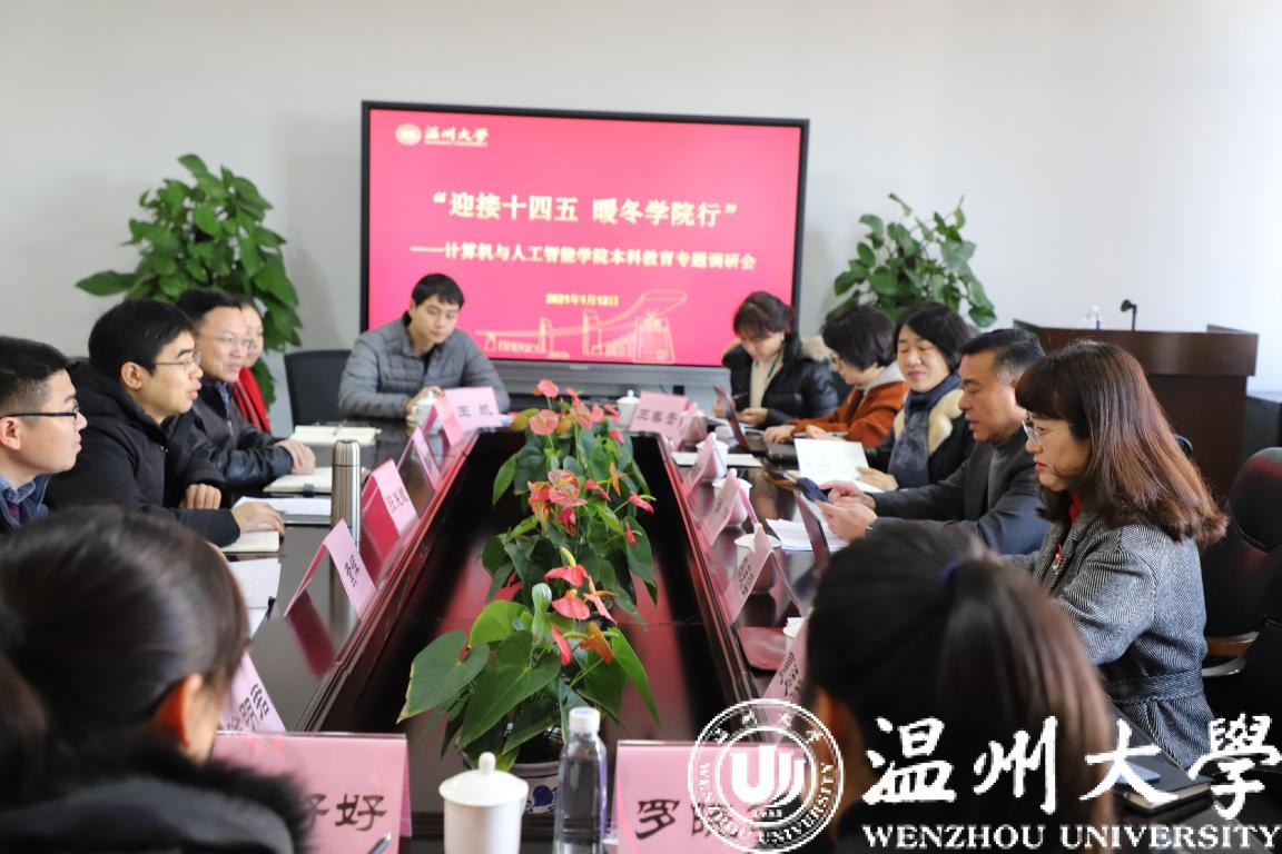 张笑钦院长首先对薛伟副校长一行来我院调研表示欢迎,对学校及教务处给予成人短视频 教学工作的支持表示感谢。接着,张院长从专业建设、课程建设、教学平台建设、教学项目立项、教材建设、考研情况、竞赛情况等方面介绍了成人短视频 的基本教学情况,谈及目前成人短视频 本科教学工作存在的困难以及十四五期间本科教学工作的重点与工作思路。黄辉副院长介绍了我院下一阶段在专业、课程、学生竞赛等重点工作方面的目标。全力书记强调,成人短视频 高度重视本科教学工作,着力提升成人短视频内涵培养质量。