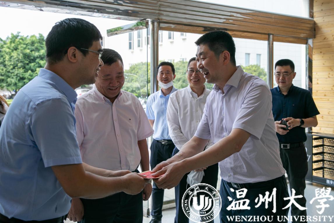 5月25日,在第四个全国科技工作者日即将到来之际,温州市委副书记、政法委书记陈浩,市人大常委会副主任徐育斐,市委副秘书长包光许,市科协党组书记、主席赖颖等领导一行慰问我校科技工作者优秀代表、成人短视频 院长张笑钦教授。校党委书记谢树华陪同。