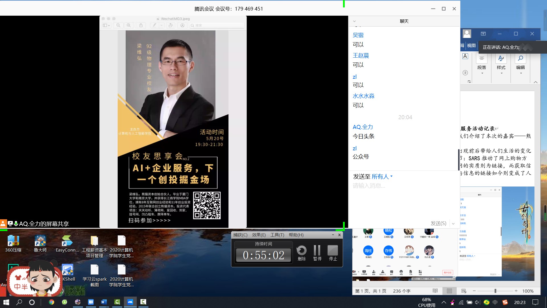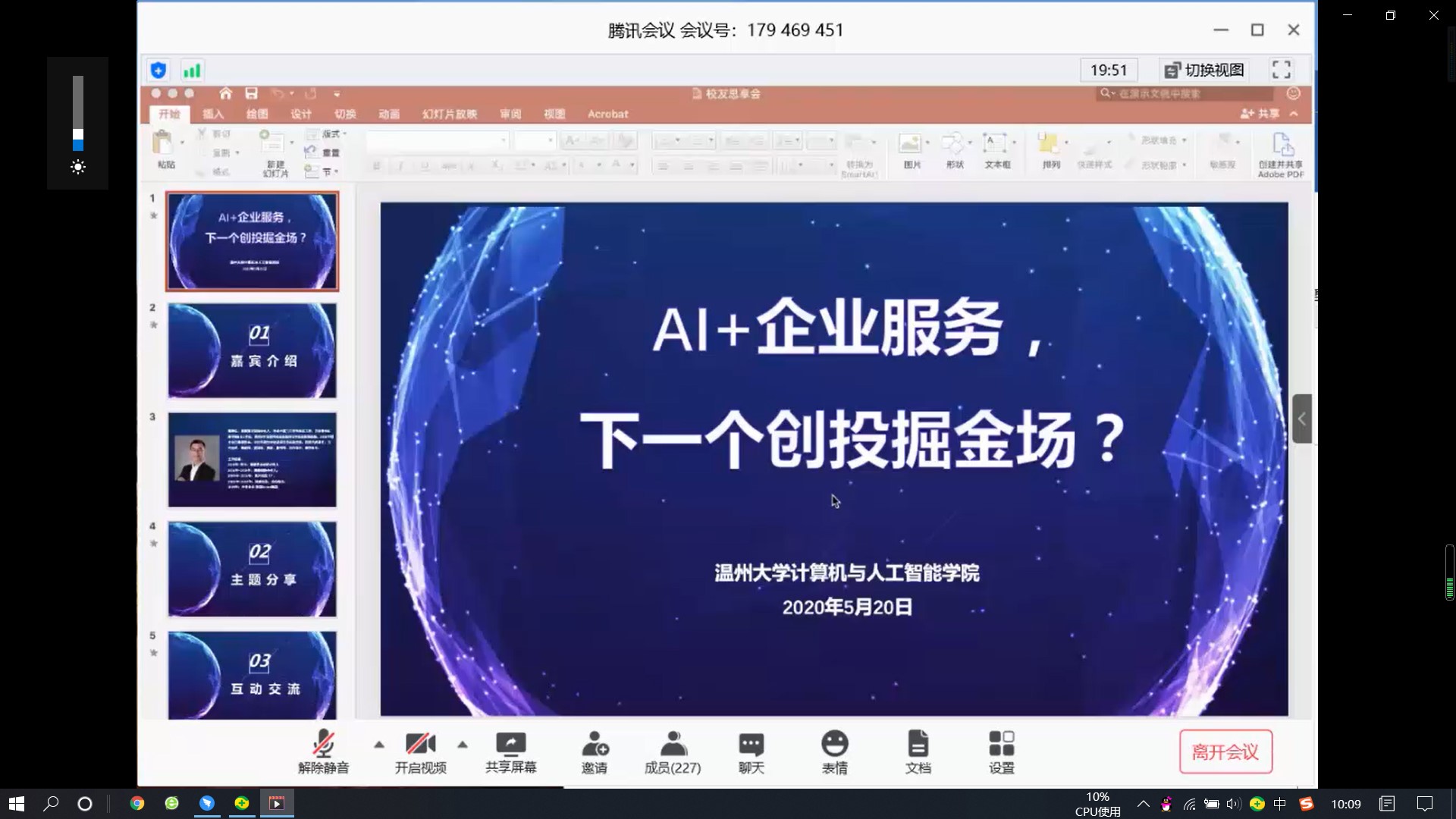 为进一步拓展同学们的眼界,深入了解互联网创业和投资等方面知识,5月20日晚,由成人短视频 校友发展与联络办公室、成人短视频 主办的“校友思享会——AI+企业服务,下一个创投掘金场”于腾讯会议上准时开展。本次“校友思享会”由成人短视频 党委书记全力主持,并有幸邀请到熊猫资本创始合伙人梁维弘为我校300余名师生及校友进行云分享。