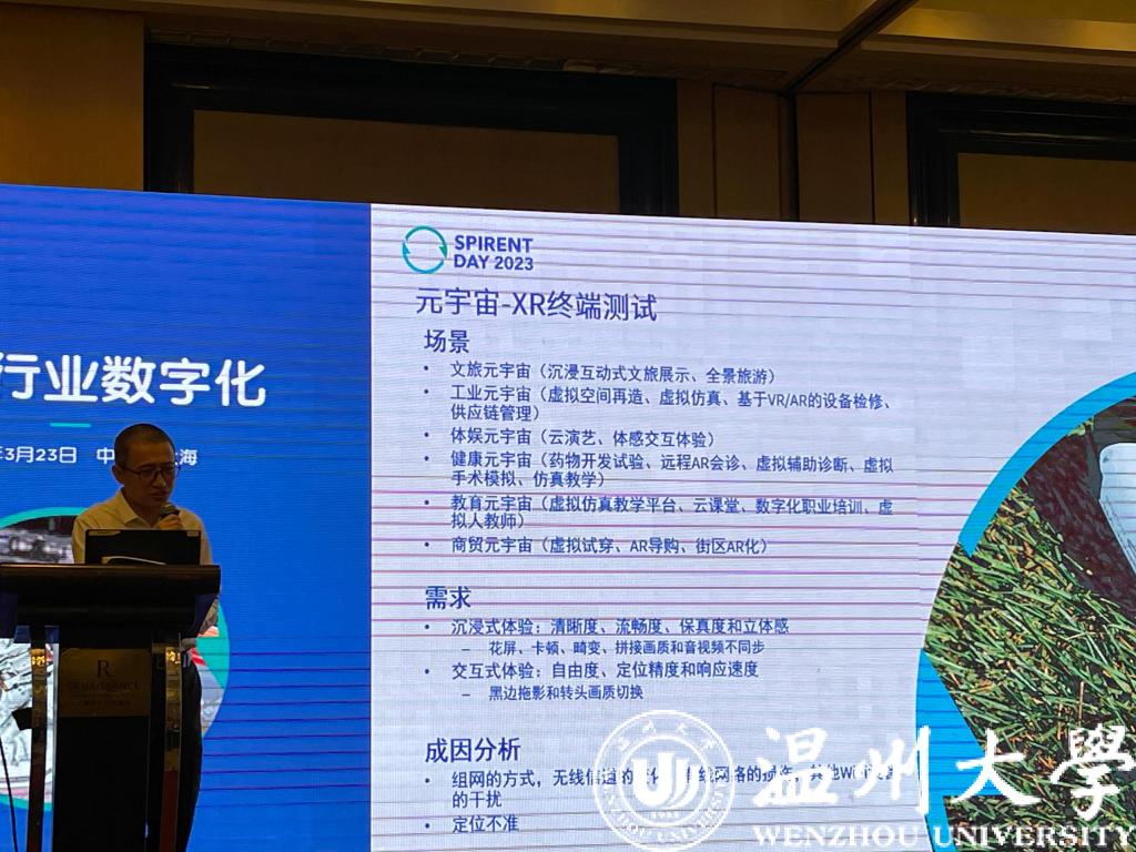 3月23日举办的思博伦通信Spirent Day技术展的主题是“加速行业数字化”,来自业内的重量级主讲嘉宾、思博伦专家团队以及四百余名行业用户一起,深入探讨5G技术在各行业中的应用和推广,分享前沿技术与优秀测试案例。思博伦通信是一家致力于提供持续优化测试解决方案的领先测试仪表厂商,帮助客户将业务应用与数字化紧密结合,让数字技术成为驱动行业变革的强劲动力。思博伦通信也是我院网络工程专业多年的产学共建合作伙伴,在实验室共建、课程与教材合作开发、工程师授课、实习与就业岗位提供推荐等多方面有深入密切的合作互动。此次金可仲老师参加Spirent Day技术展,从网络测试系列课程建设的视角出发,与与会专家探讨了测试技术在5G、家庭网络、元宇宙等场景下的应用案例,为《网络测试与分析》省一流课程的进一步建设开拓了思路,也探讨了课程合作的初步意向。