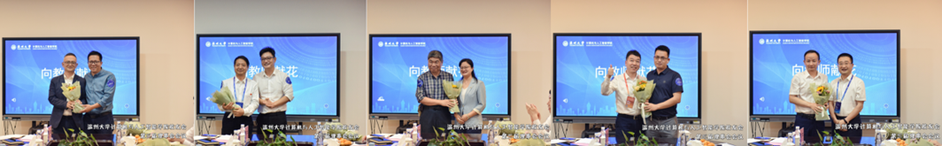 校友代表依次向授业恩师献上鲜花,合影留念。