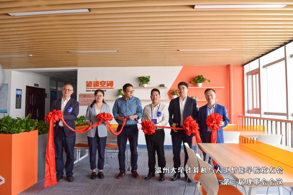会议尾声,成人短视频 院长张笑钦、党委书记全力以及来自99级计算机本科班、01级计算机本科班、浙江索思科技有限公司的校友代表出席“修读空间”剪彩仪式,共同祝贺成人短视频 热心校友捐赠的修读空间正式投入使用。