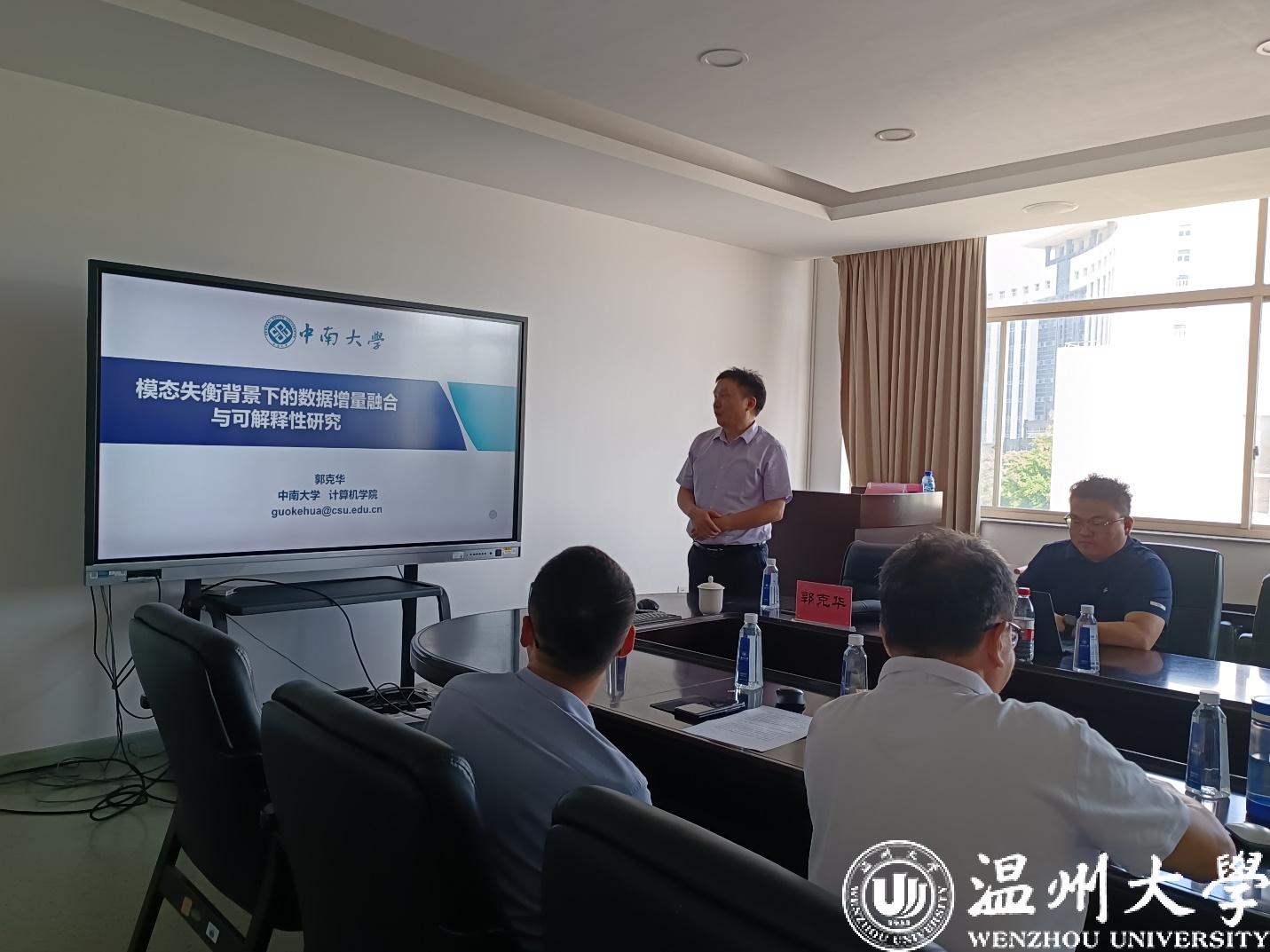 2023年8月13日上午,中南大学发展规划与学科建设处副处长郭克华教授受邀来我院作题为“模态失衡背景下的数据增量融合与可解释性研究”的学术讲座。讲座由陈慧灵副院长主持,相关领域师生参会。